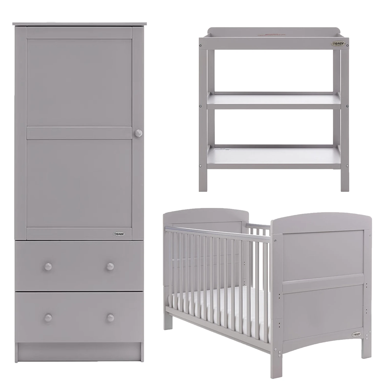 Looking for an affordable option to furnish your child’s nursery that doesn’t compromise on great design or valuable features? The Obaby Grace 3 piece nursery set is the perfect choice for parents looking to balance fantastic quality with great value. The charming selection of stylish wooden pieces includes a Grace cot bed, along with an open changing unit and a co-ordinating single wardrobe, available in a range of colours.