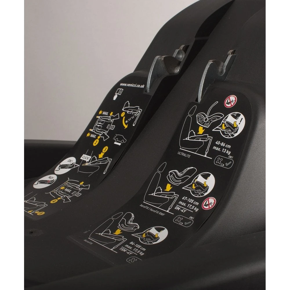 The IQ base is a reliable ISOFIX base developed for Venicci ULTRALITE as well as for AeroFIX. It uses a patented single socket solution for directly connecting the child seat to the car. The reduced number of connections between the belts and the ISOFIX system maximises the child’s safety by making it easier to transfer more energy to the car’s structure instead of the child. Moreover, thanks to the sound signalling for correct connection to the IQ ISOFIX base of the Click n’ Drive control unit, there is no risk of the seat being wrongly fastened to the base, which maximises its effectiveness.