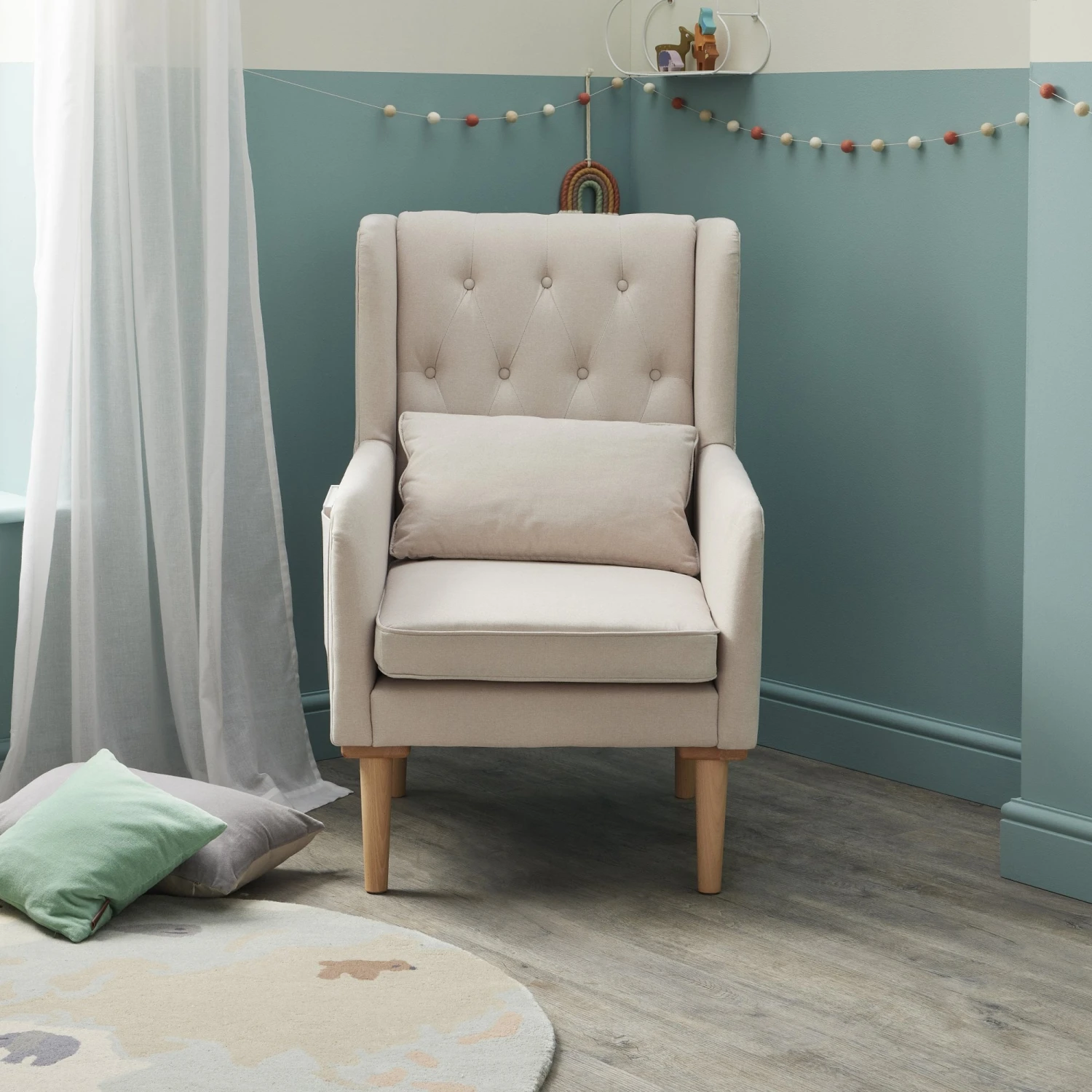 The Babymore Lux Nursing Chair is the perfect choice for relaxing in your baby’s nursery and feeding your little one. The smooth and gentle rocking motion, along with supportive back rest and lumbar cushion includedd for extra support, ensure maximum comfort. Two handy storage pockets for all your baby’s essentials mean you don’t have to get up and disturb baby whilst they settle. When your little one has grown, just swap over to the hardwood beech legs which can be fitted to make your chair part of any stylish room for years to come. Available in both Cream and Grey.