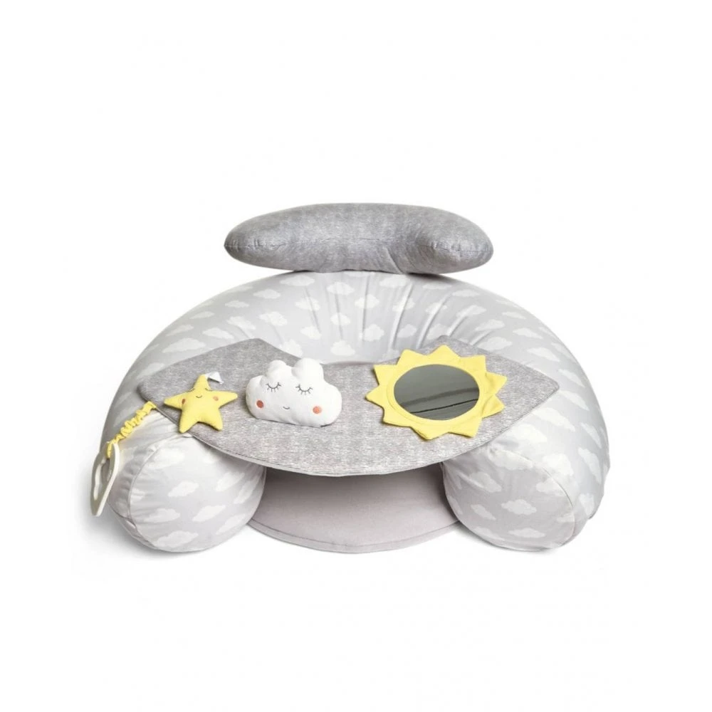 Your little one can enjoy independent playtimes with our Sit & Play interactive seat. The inflatable seat sits and raised back keeps your child secure and supported as they play. It comes with a removable play panel that’s full of interactive features, including: crinkle texture, squeaker noise, a rattle and a mirror so they can see themselves.